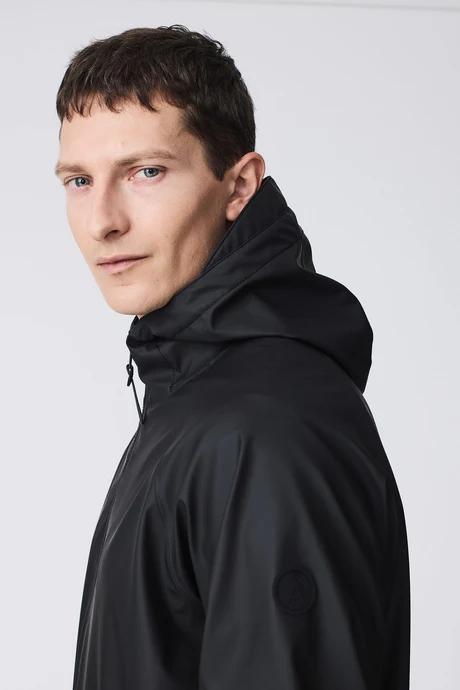 Abrigo Impermeable Arashi negra TANTÄ. Pertenece a la temporada otoño /invierno 2025.