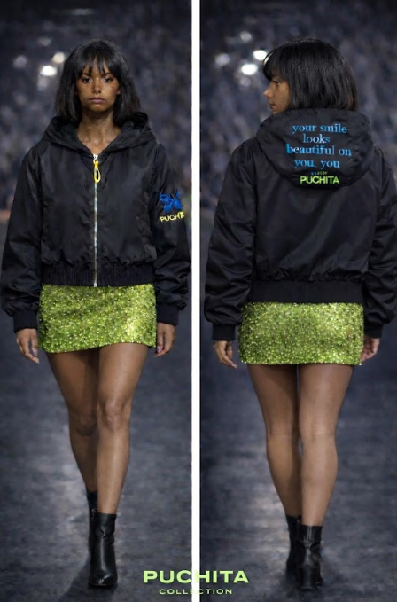 Detalles gráficos bordados de la marca Puchita aportan un toque distintivo y contemporáneo